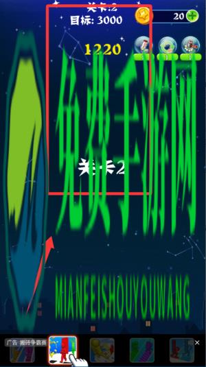 1、进入关卡后先观察星星分布,找颜色相同且相邻的两个以上星星,点一下就能消除,为后续落下创造机会。