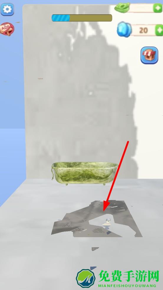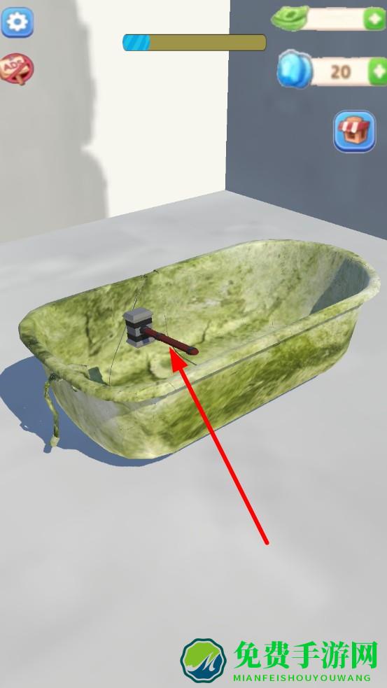 1、选择待改造生锈浴缸,点击界锤子,滑动屏幕瞄准敲击位置,正式开启拆解流程。