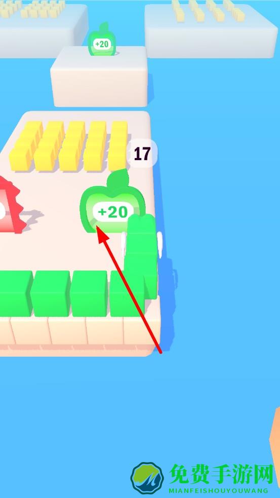 2、场景互动彩蛋:部分方块藏在假障碍后,如可撞碎墙体,撞击不仅得方块,还触发加速Buff;场景中苹果道具可临时提升移速,增添了探索惊喜。