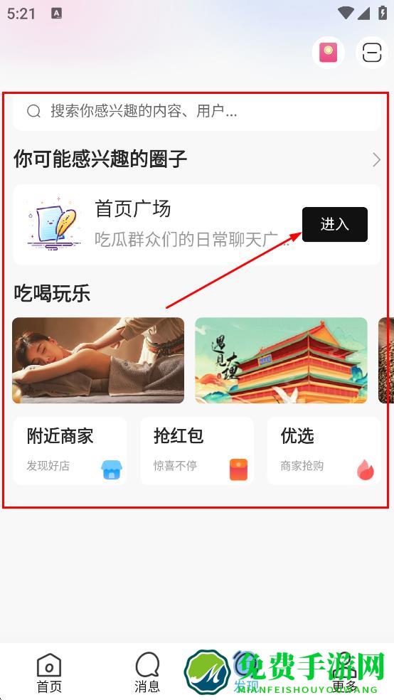 1、打开软件后,浏览推荐的兴趣圈子,找到感兴趣的旅行圈、广场舞圈等,点击加入即可进入圈子,查看圈友分享的内容。
