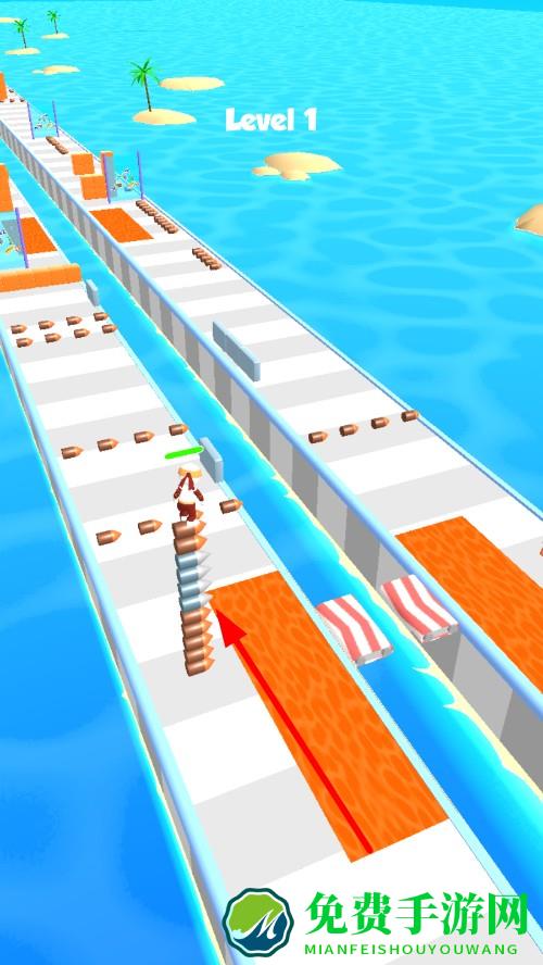 叠弹对决是一款3D跑酷堆叠竞技手游,玩家化身敏捷挑战者,在碧海椰岛环绕的水上赛道冒险,操控角色穿梭时,需收集子弹堆叠成弹柱,这既是跨越宽沟、击碎障碍的武器,也是竞速博弈的核心筹码,随关卡推进,动态陷阱与对抗机制升级,考验手速与策略平衡,最终以壮观弹柱冲刺终点,解锁PERFECT荣耀,在清凉海景中畅享堆叠与竞速的双重快感。