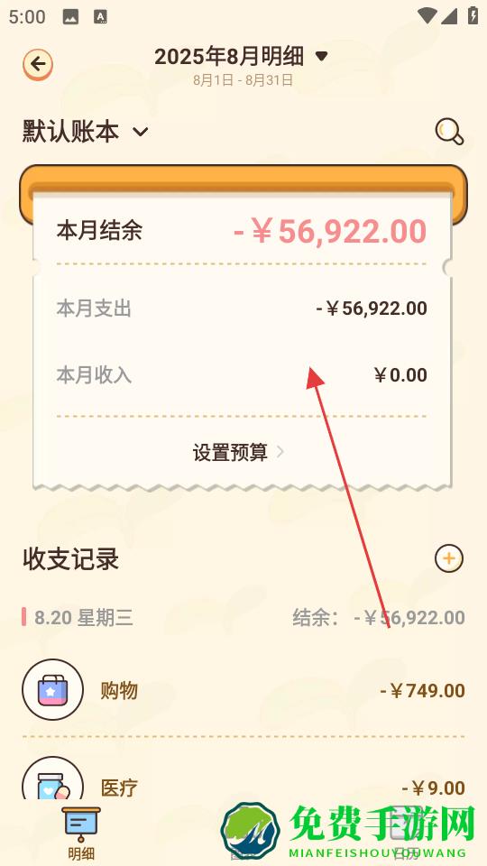 3、撕边纸的设计让账单看起来像手账本一样亲切,往下滑能看到每天的详细支出,购物和医疗这些分类都列得明明白白,右下角还能切换图表看消费趋势。