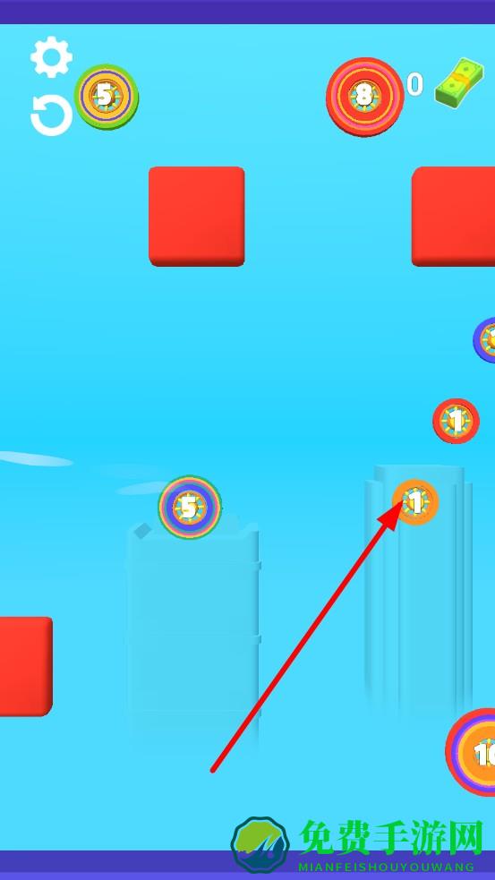 1、进入关卡后,滑动屏幕控制转轮上下方向,触碰数字圆盘即可吸收数值,避开红色障碍,规划收集路径。