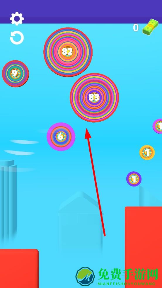 3、应急避险:遇红色障碍,快速点击让转轮收缩,穿过缝隙;或借小数字圆盘的轻弹跳,微调方向避险,保障生存与分数两者兼得。