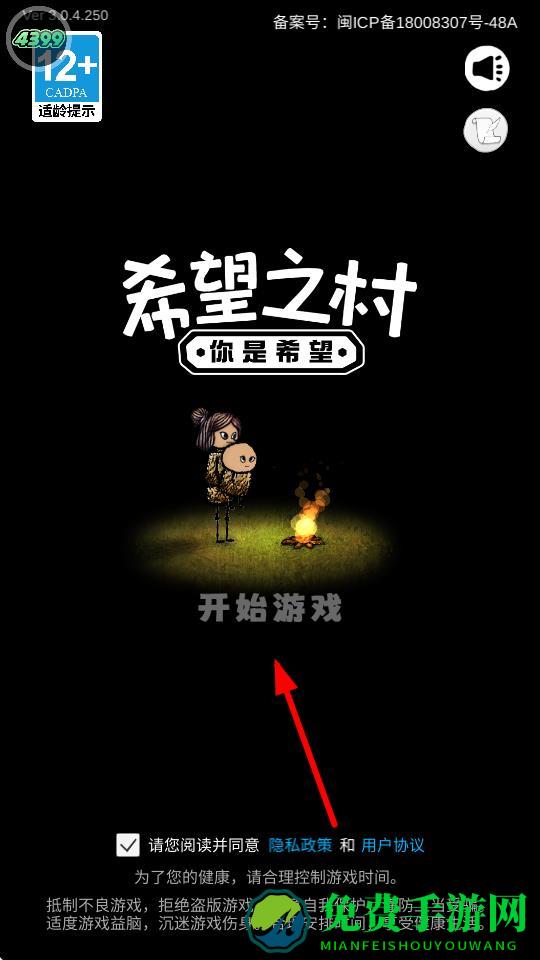 1、实名认证后,勾选请您阅读并同意隐私政策和用户协议,点击开始游戏,进入游戏流程。