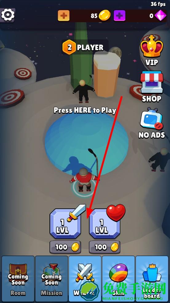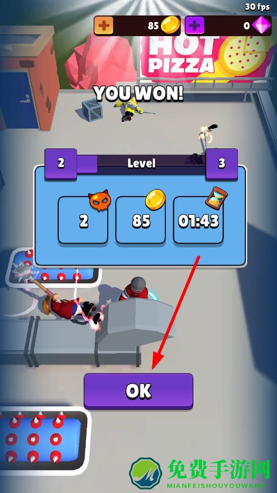 3、通关后点击OK结算奖励,消耗金币升级武器伤害、生命上限,解锁炫酷角色皮肤;累计胜利逐步解锁多人对战模式,挑战更强的对手。