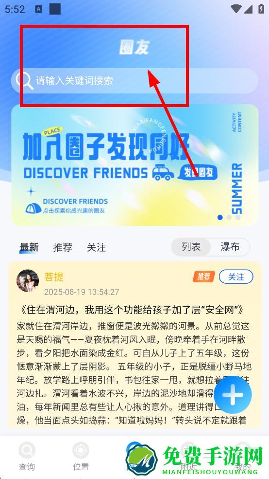 3、切换到圈友页面,可在搜索框输入关键词搜索圈友,也可浏览推荐内容。