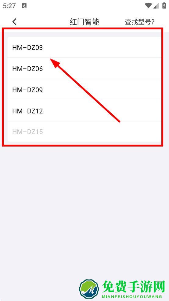 2、选择红门智能品牌后,在其型号列表中,可根据需求选择对应型号,比如选择【HM-DZ03】。