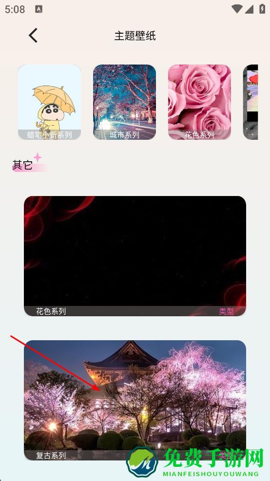 2、在主题壁纸页面,滑动查找心仪的壁纸系列,点击对应壁纸缩略图,进入该壁纸的详情展示页面。