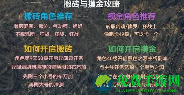 1、搬砖和摸金攻略,如下图所示,小编觉得鬼泣、气功、奶妈比较好混后期的团本,可以养一个