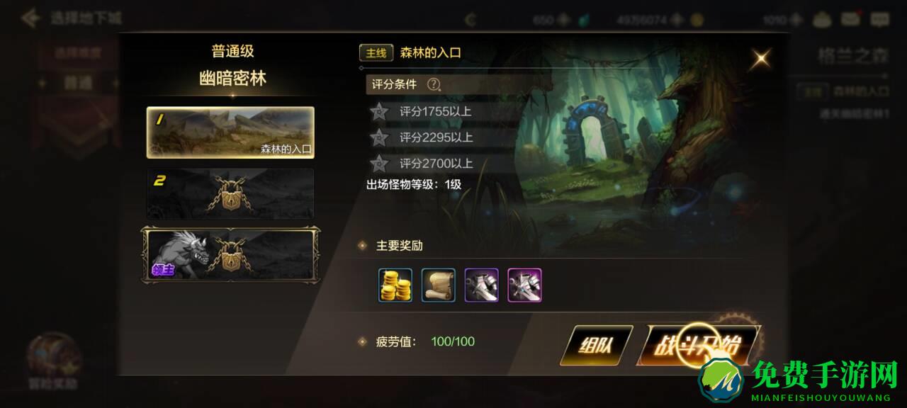 普通地下城是我们升级的重要副本,通关可以完成主线任务,获取大量经验值。不过在刷图的时候要注意左侧的评分系统,积攒评分可以在冒险奖励当中领取各种材料和属性称号,还包括+7防具和武器,帮助我们更高效地通关地下城。