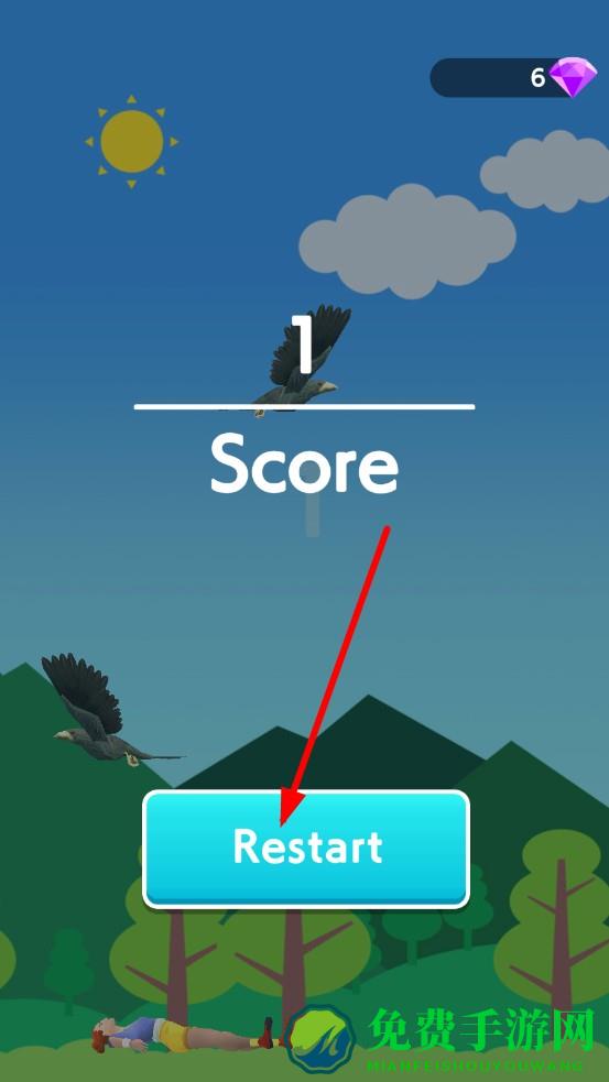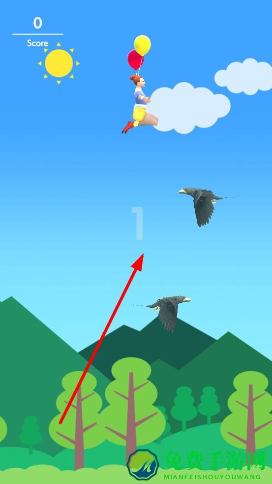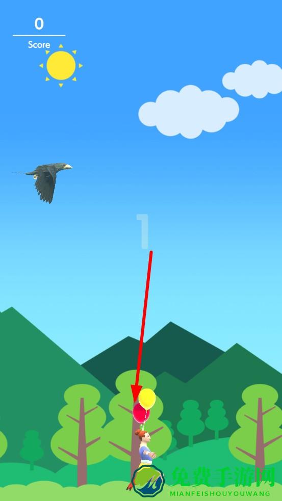 2、 保护角色头上的气球,两个气球代表有两条命,避免被老鹰碰撞,若气球都破裂了,则游戏结束。