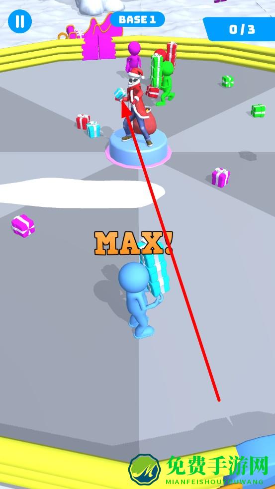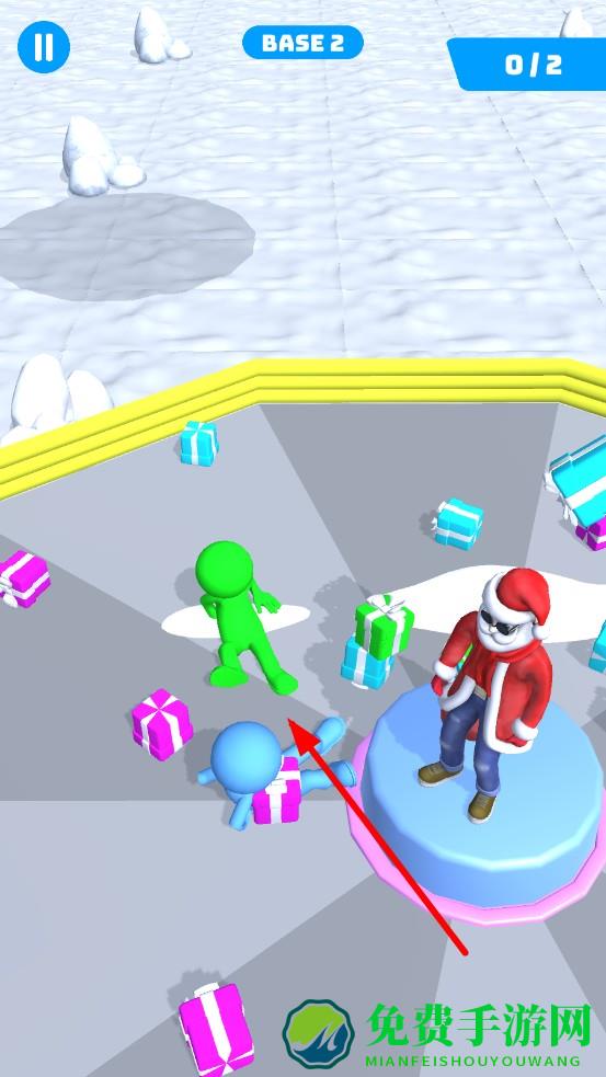 2、扛着礼物向己方基座前进,途中留意对手干扰,避免礼物掉落,收集够六个后,即可进入下一轮。