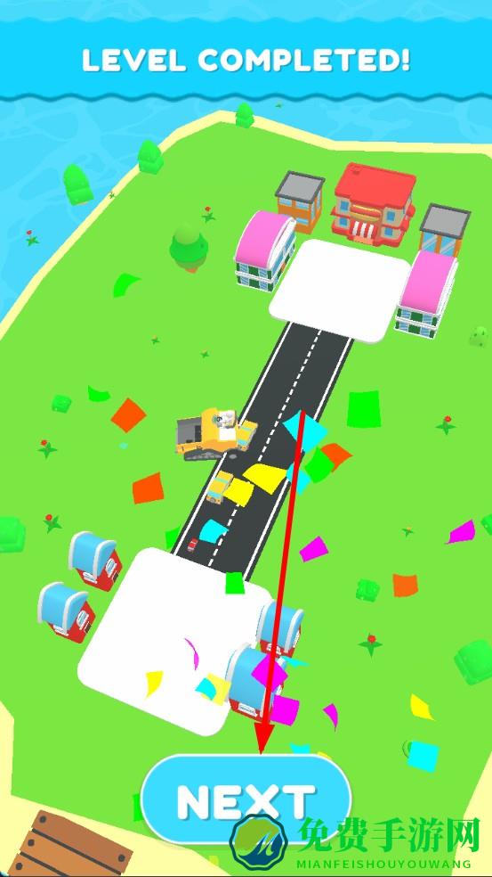 3、当成功连接起点与终点后,即刻完成关卡,解锁新地图。积攒的金币可用于升级工程车性能,或解锁多样道路样式。