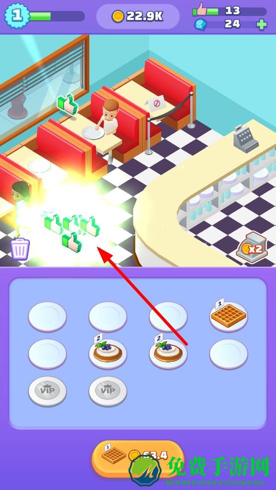 2、客人食用完后,会获得比赞的手势,可以用来解锁店内的更多装饰品,打造不同风格的甜品店。