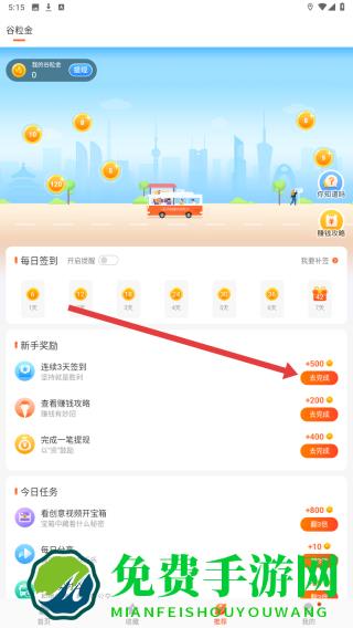 2、进入推荐界面后,找到如新手奖励栏的连续3天签到任务,可以点击右侧去完成累计登录,做完任务领取奖励。