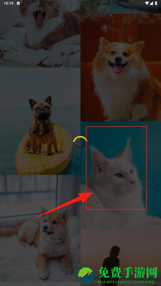 3、在图片浏览页,点击白色猫咪图片,查看该宠物详情,可了解宠物信息或进行互动操作。