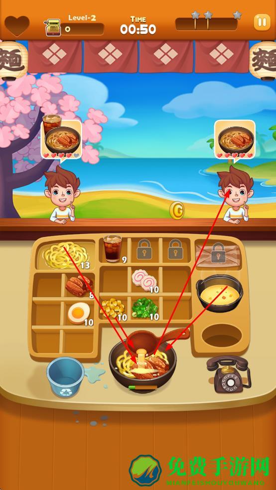 3、解锁新品类拓展菜单:当收益与店铺等级达标,解锁新的拉面种类与配料,学习制作更复杂的汤底与配菜,比如耗时更长的鸡白汤拉面,添加高级配料叉烧。