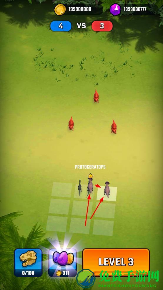 3、击败敌人后获取金币,用于孵化更多恐龙或推进关卡。