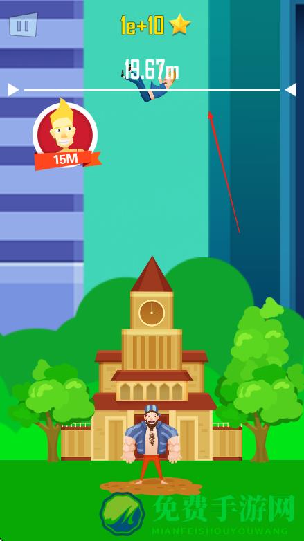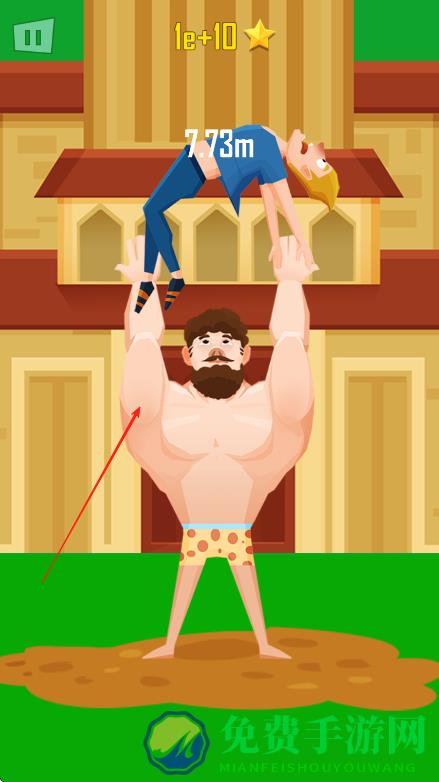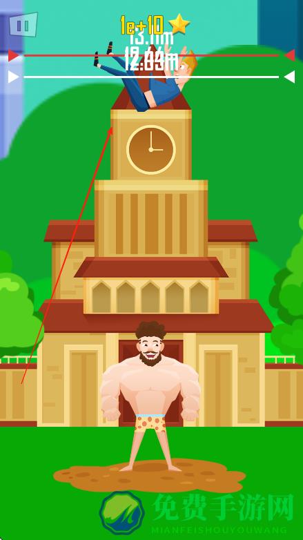 2、点击屏幕控制大力士举起角色,再次点击让大力士将角色抛出,通过控制点击时机调整抛出力度和角度。