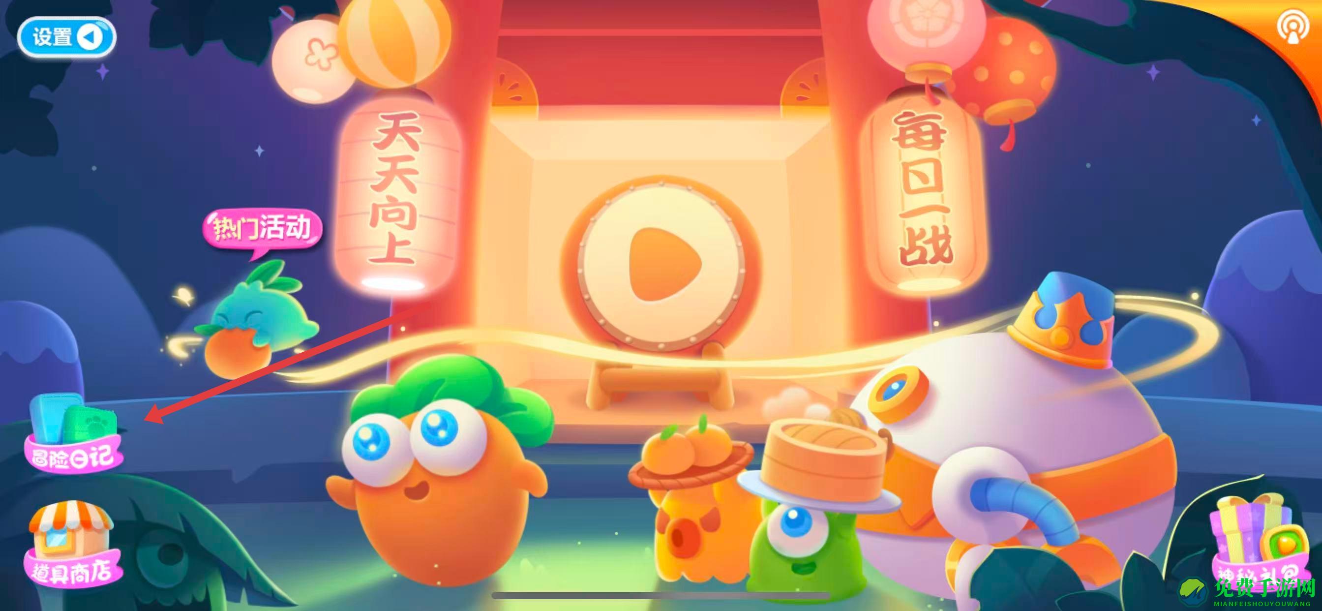 1、在游戏主界面,找到并点击左侧冒险日记,开启活动探索路径。