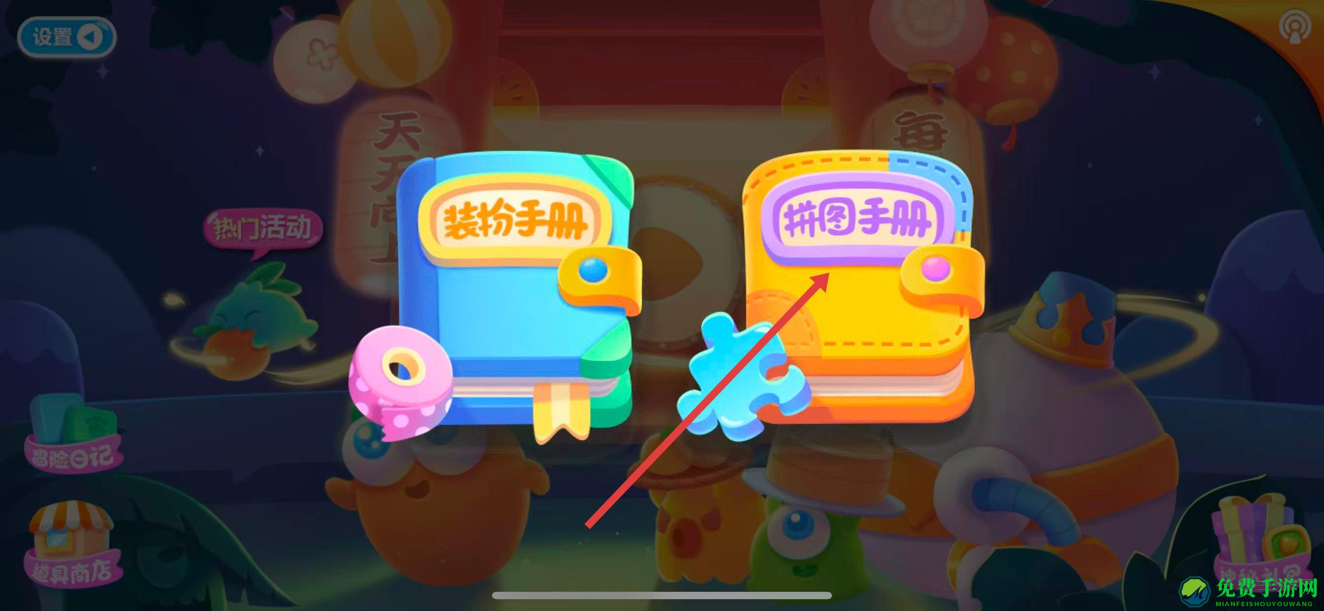2、进入冒险日记相关界面后,选择拼图手册,进入拼图玩法专属页面。