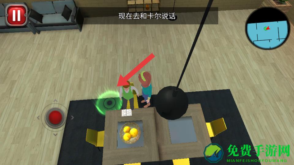 1、进入模拟页面,先在客厅找到卡尔,点击互动按钮触发对话,完成基础剧情交互,熟悉角色互动操作逻辑。