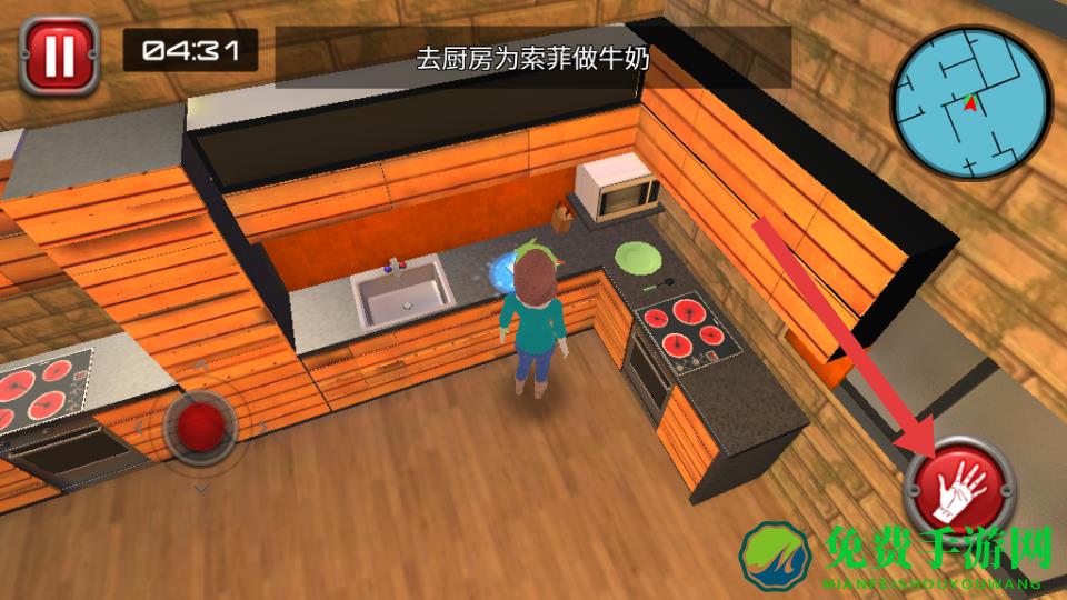 2、对话结束后,按任务提示前往厨房,点击获取牛奶制作材料,长按右侧完成牛奶制作,准备给索菲送去。