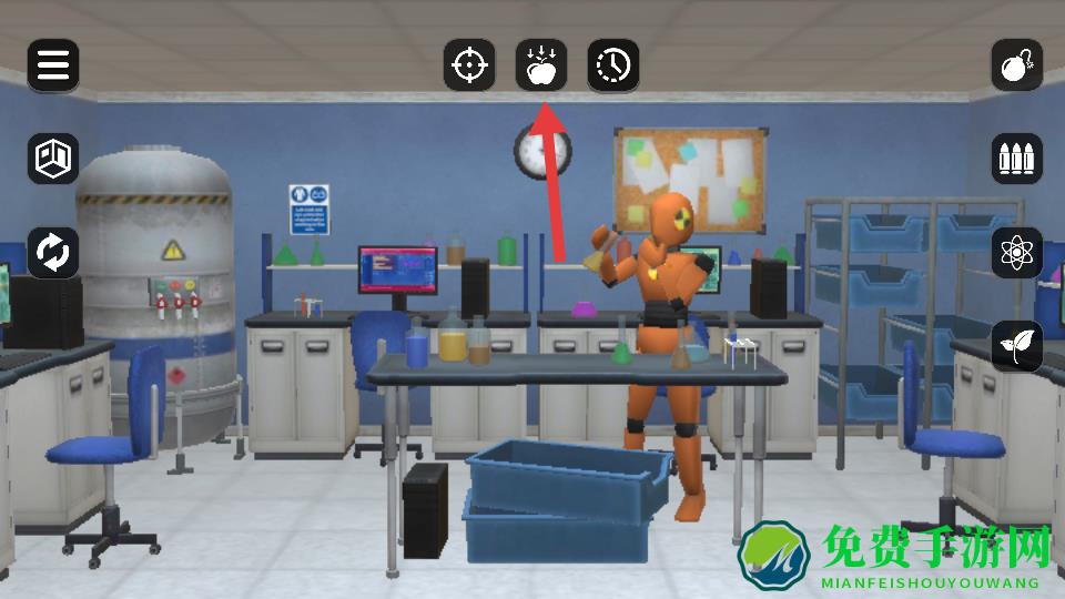 1、进入游戏后选择目标场景,操控木偶人移动到场景内,点击屏幕下方的武器图标,即可拿起对应武器开始破坏周围物品。