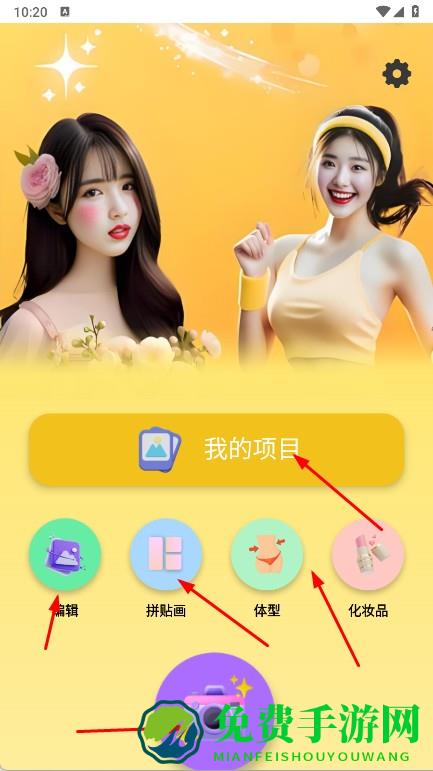 2、在主界面,有我的项目及编辑,拼贴画,体型,化妆品等功能入口,想制作拼贴画,点击拼贴画,选素材进入编辑。