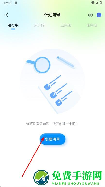 1、打开时间规划表,进入首页,可使用计划清单,习惯打卡,倒数日等功能,想规划习惯养成,点击计划清单,再点创建清单。