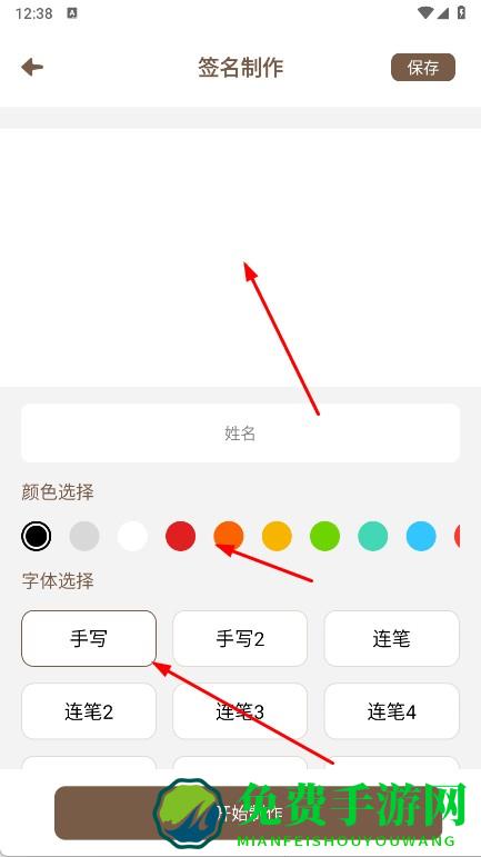 3、在签名制作页,填姓名,选颜色,字体,点击开始制作,生成艺术签名。
