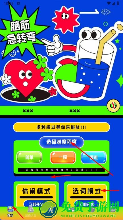 1、打开白盒子,在首页选答题模式,如脑筋急转弯,点击选择难度程度,如简单、一般、困难,再选休闲模式或选词模式,点击立即开始。