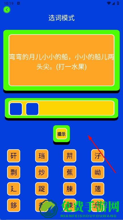 2、以脑筋急转弯简单模式为例,进入答题页选题目,看问题,如什么东西有键但打不开锁,选答案,选词模式则依据谜面,从候选字选字填空答题。