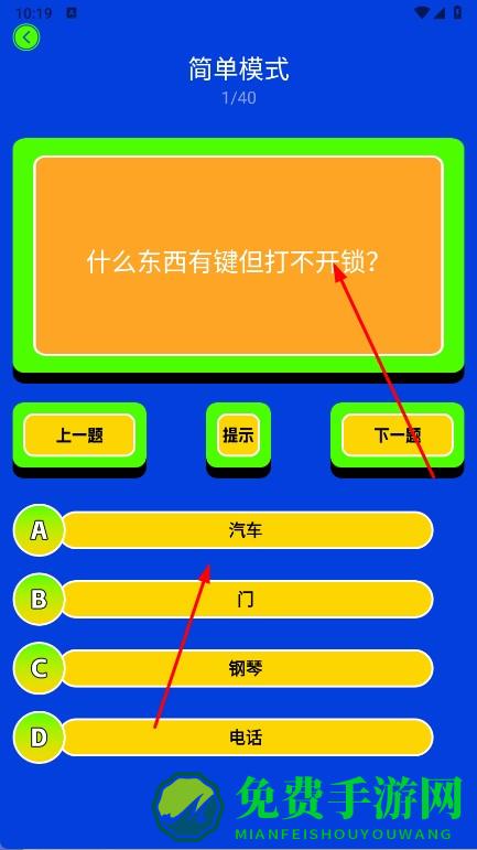 3、答题可点击提示获线索,完成一题后按上一题,下一题切换,利用丰富答题资源,享受答题乐趣与知识学习。