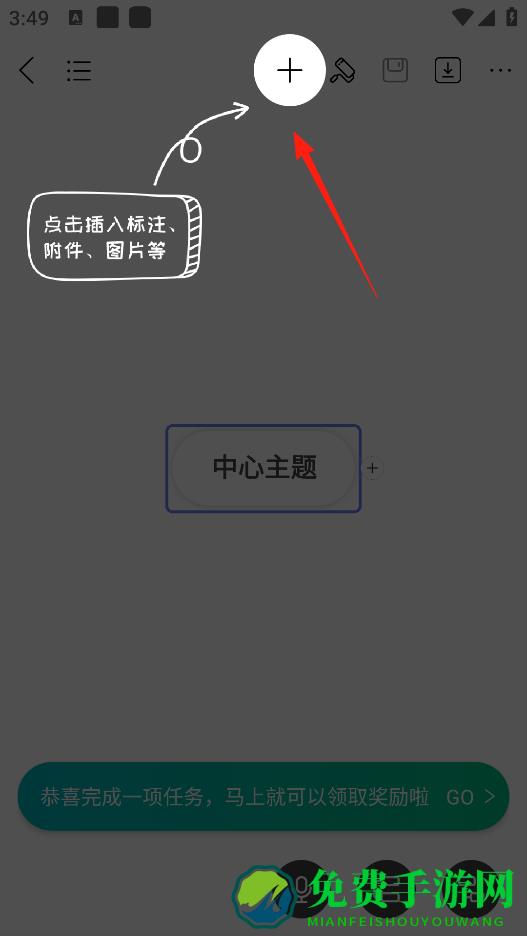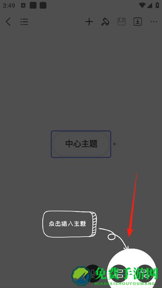 2、进入思维导图编辑界面,有个中心主题框,你可以在里面输入核心内容,然后点下面的按钮,能插入新的主题,这样就能一步步构建思维导图的分支啦。