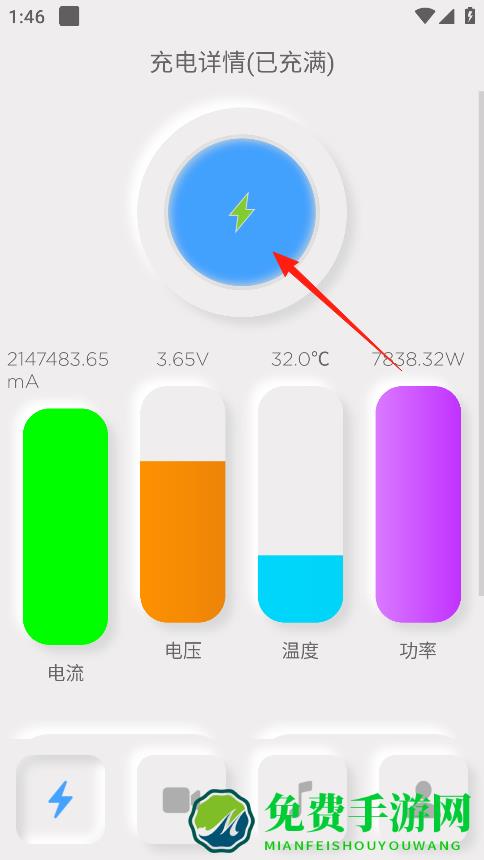 1、这充电秀app能展示充电详情,像电流电压温度功率这些数据都能看到,充电的时候,界面上还有个带闪电标志的圆形区域,能直观显示充电状态,充没充满一眼就知道。