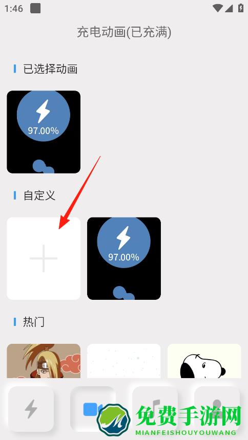 2、可以设置充电动画,有已选择的动画,也能自定义添加,你要是不喜欢现成的,就点自定义里的加号,选自己喜欢的动画,让充电的时候更有乐趣。