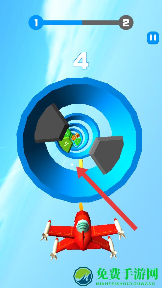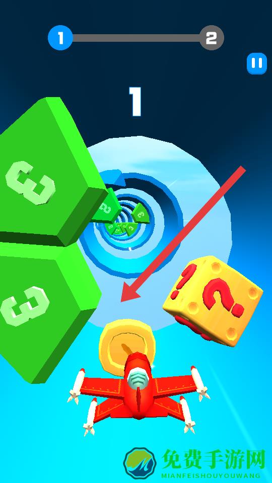 1、操控红色飞机进入螺旋通道后,优先收集带有数字的绿色方块,这类方块是推进关卡进度的关键道具。