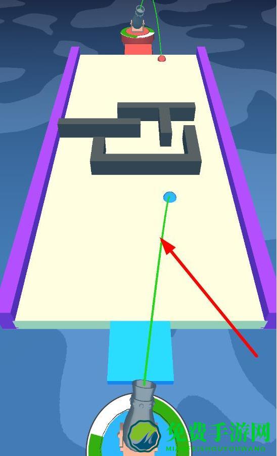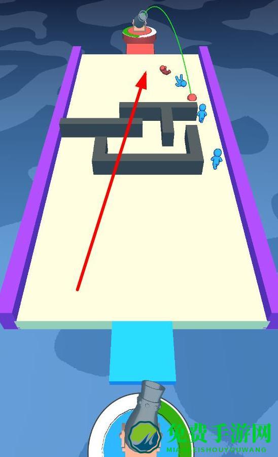 1、进入游戏,选定初始大炮,观察迷宫的布局后,滑动调整发射的角度,将角色发射到场上。
