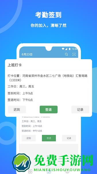 3、打卡记录:记录打卡时间,不用担心下班早打卡,准确掌握下班时间;