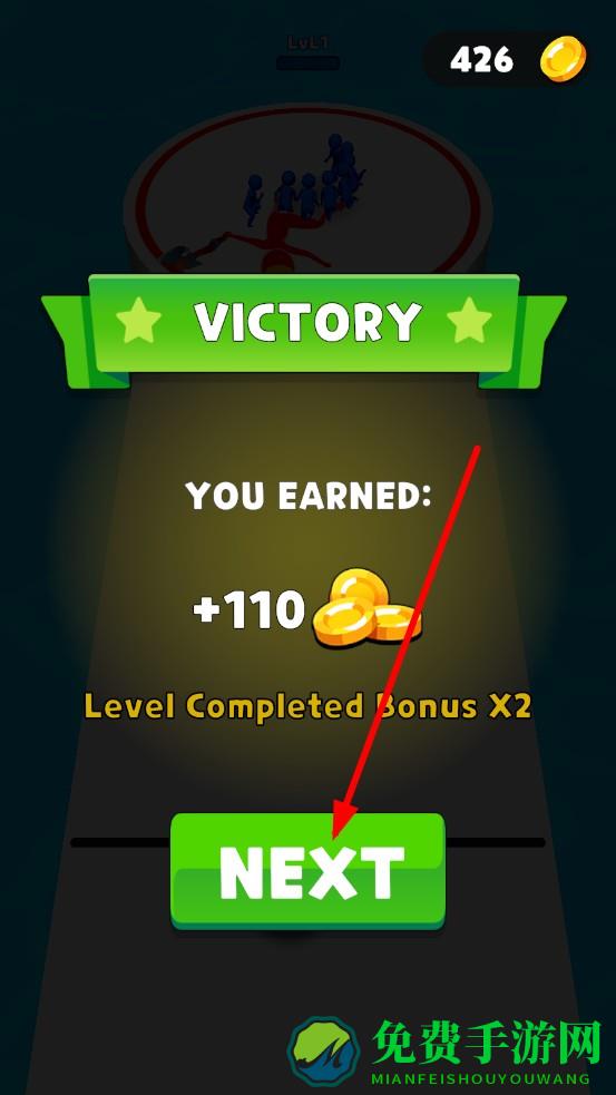3、击败领主后,屏幕弹出VICTORY,收获基础金币与双倍奖励,点击NEXT进入下一关,挑战更加复杂的全新赛道。