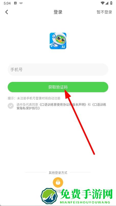 3、进入登录页面后,输入手机号,点击获取验证码。