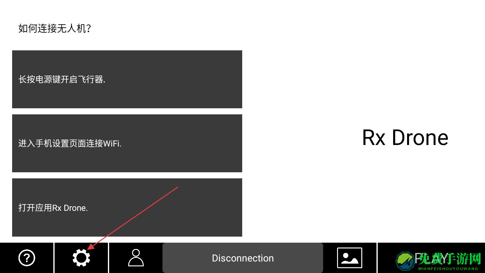 1、在RxDrone应用主界面中,点击齿轮形状的设置图标,进入设置界面。
