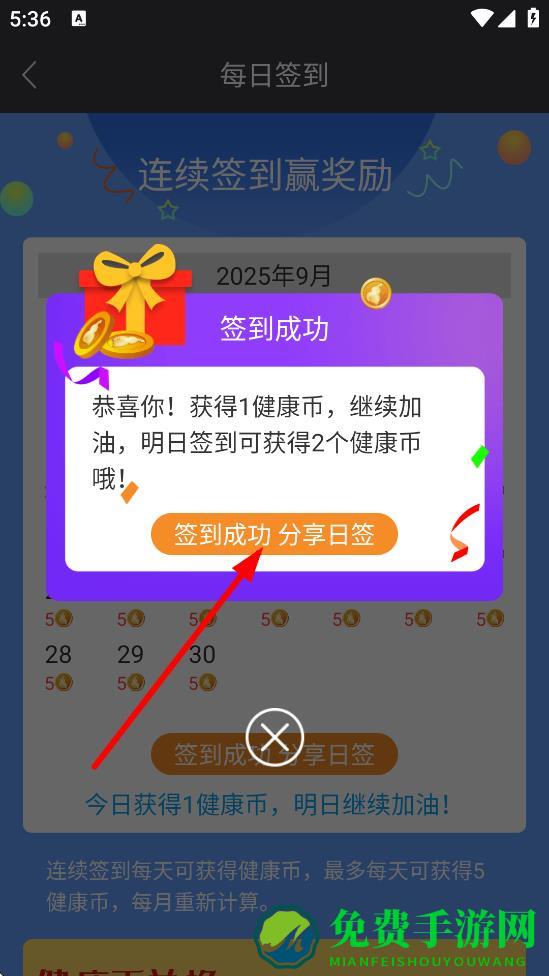 3、签到成功后,点击签到成功 分享日签。