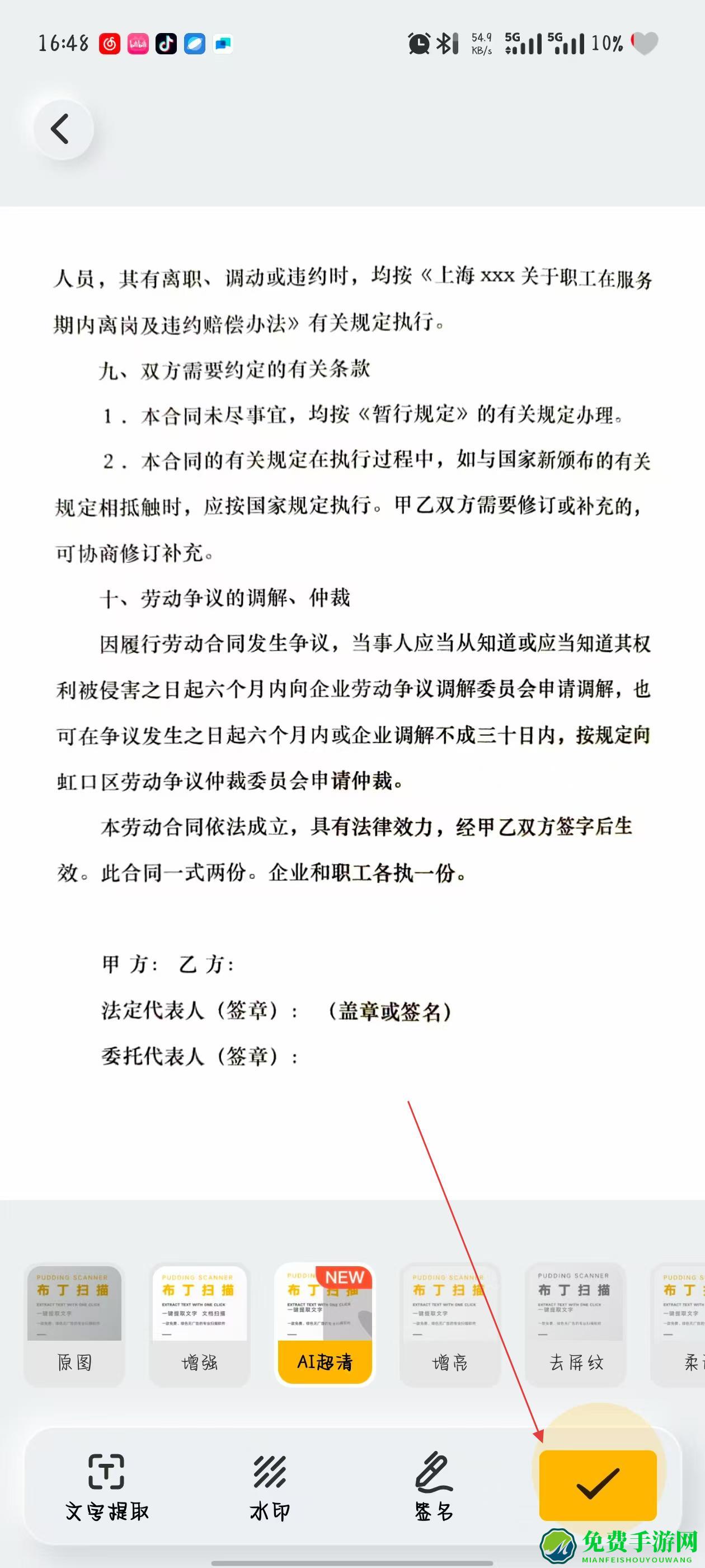 4、对扫描后的文档图像进行优化处理,然后点击界面右下角的打勾按钮即可。