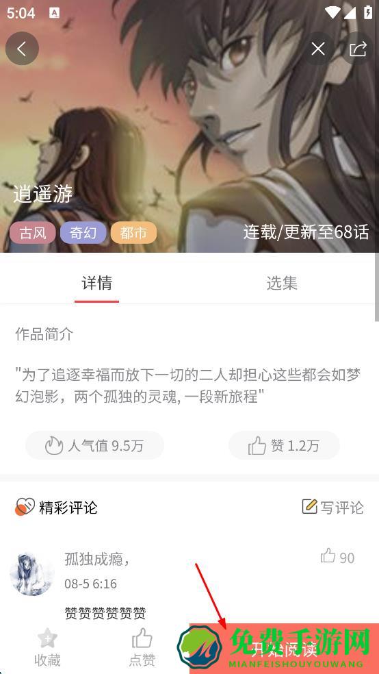 4、点击选中的漫画,进入漫画详情页面,查看作品简介、人气值等信息,然后点击开始阅读,沉浸到漫画内容中。