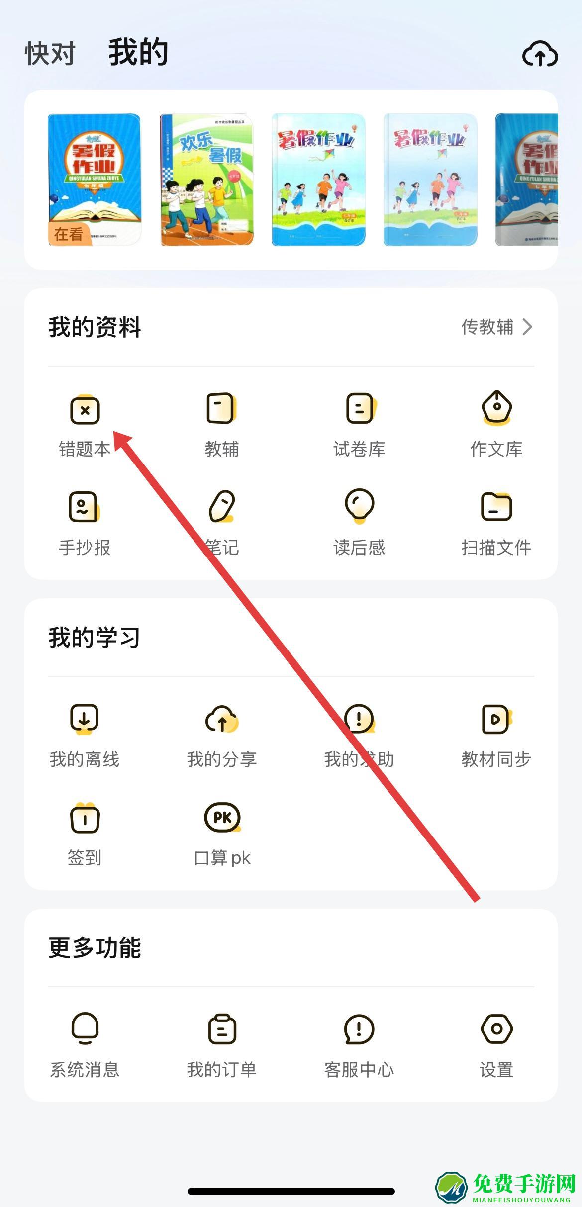 2、进入个人主页之后,在个人页面的我的资料板块里,找到并点击错题本选项。