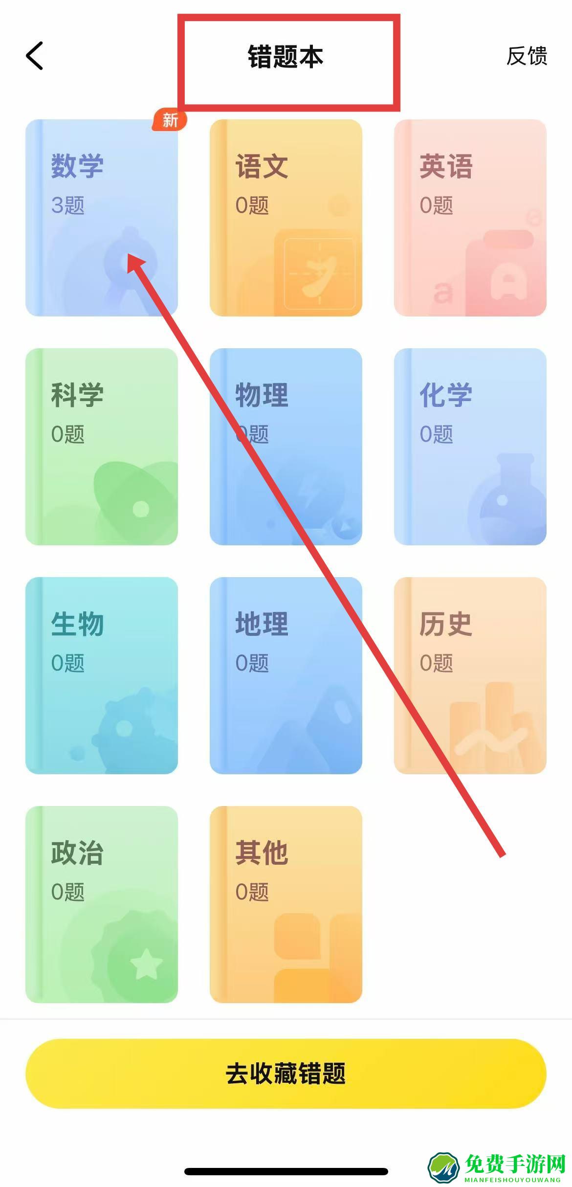 3、进入错题本页面后,选择对应的学科,就可以查看其中记录的搜题等相关题目。
