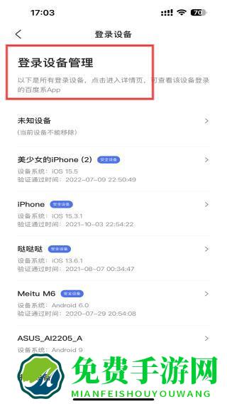 4、点击进入后,即可查看历史登录的设备、时间等信息。